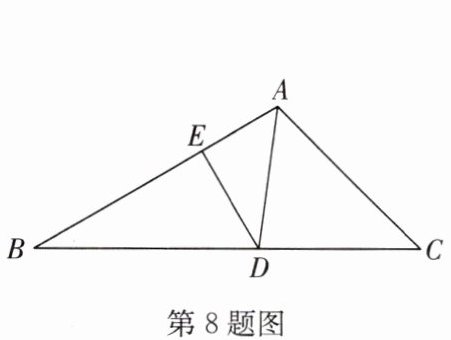 8. 如图,在 $ △ ABC $ 中,$ ∠ B = 30^{\circ} $,$ ∠ C = 45^{\circ} $,$ AD $ 平分 $ ∠ BAC $ 交 $ BC $ 于点 $ D $,$ DE⊥ AB $,垂足为 $ E $. 若 $ DE = 1 $,则 $ BC $ 的长为(
