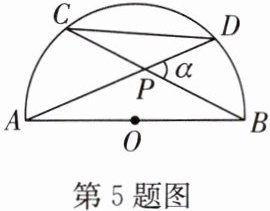 5. 如图,$AB$是半圆$O$的直径,弦$AD$,$BC$相交于点$P$,若$∠ DPB = α$,则$CD:AB$等于(