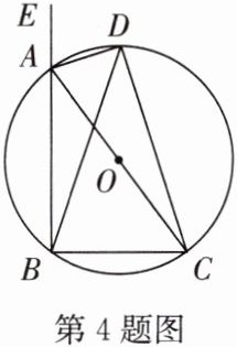 4. (2024·玄武区模拟)如图,$△ ABC$的外角$∠ EAC$的平分线$AD$交其外接圆$\odot O$于点$D$,连接$DB$,$DC$.若$AC$是$\odot O$的直径,$\sin ∠ BDC = \frac{3}{5}$,求$\tan ∠ DBA$的值.
