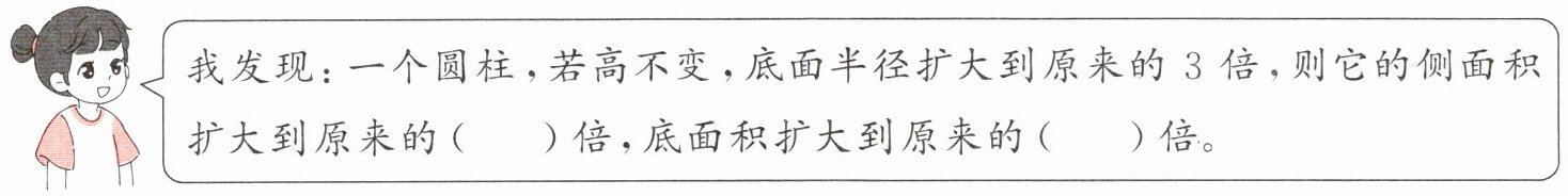 我发现:一个圆柱,若高不变,底面半径扩大到原来的3倍,则它的侧面积扩大到原来的(
