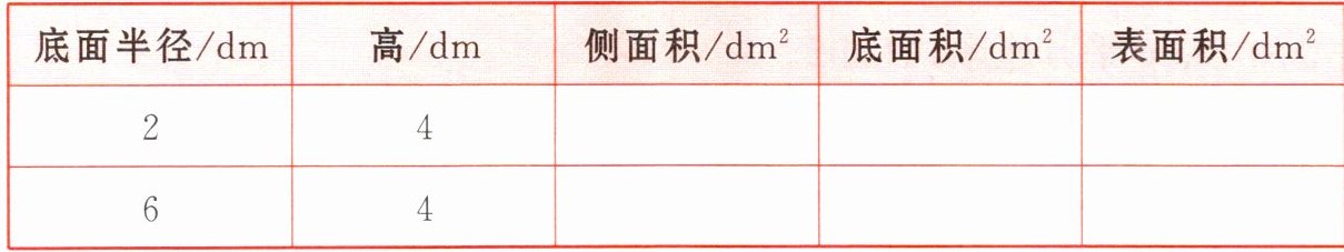 2 下面是两个圆柱的数据,算一算,想一想。(表中结果用含π的式子表示)