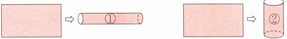 3 如下图,用两张完全相同的长方形纸,分别卷成两个不同的圆柱形纸筒,再分别给它们添加底面。圆柱①的侧面积和圆柱②的侧面积相比,(