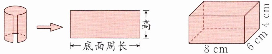 6 可以用“底面周长×高”计算圆柱的侧面积,也可以用这样的方法计算下面长方体的侧面积(下面长方体的前、后、左、右四个面为侧面),列式计算: