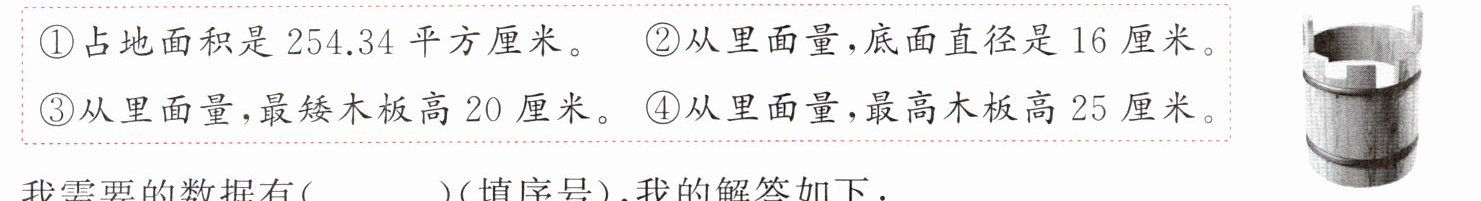 )(填序号),我的解答如下:若该木桶桶壁的木板长短不一,则该木桶的盛水量取决于桶壁上最矮的木板,这就是“木桶效应”。