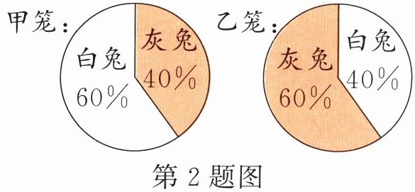 2. 实验小学里的生态农场中迎来了一批新“住户”,壮壮说:“从上图中可以看出,甲笼的灰兔和乙笼的白兔同样多。”你认为他说得对吗?为什么?