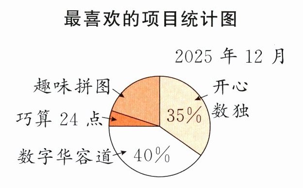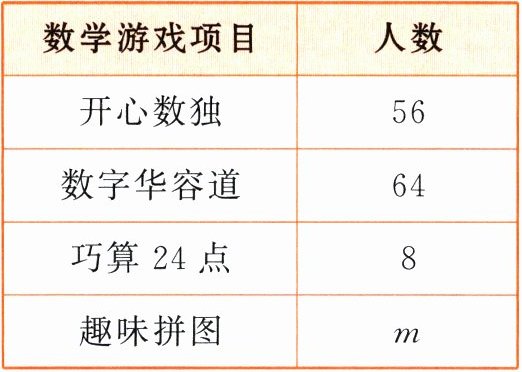 2. 李家镇小学的课后服务中,数学游戏类活动包含四个项目:开心数独、数字华容道、巧算24点和趣味拼图。为了解学生最喜欢哪个项目,学校随机抽取了一些学生进行调查(每名学生只能选其中一项),并将结果制成统计表和统计图如下: