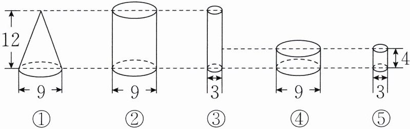 ②右图中圆锥的高是5厘米。