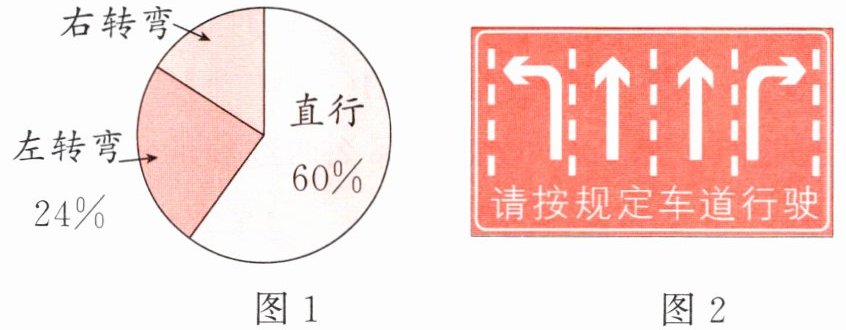 (2)这个路口左转弯和右转弯各有1股车道,直行有2股车道,车道设置如图2。在通行时间相同的情况下,该时段哪一车道更容易堵车?请计算说明。