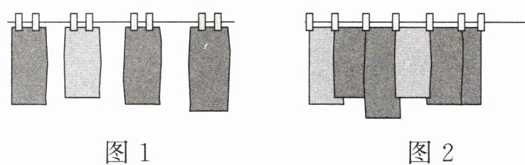 3. 太阳光中的紫外线是一种天然的消毒剂。曲洁晾晒若干条毛巾,她将每条毛巾用两个夹子挂起,如图 1。当她发现没有足够的夹子时,她开始按图 2 的方式挂毛巾。