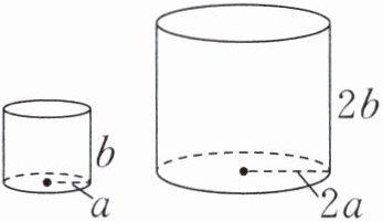 6. 答:底面半径的比是$a:2a$,高的比是$b:2b$,底面积的比是$π a^{2}:4π a^{2}$,侧面积的比是$2π ab:8π ab$,体积的比是$π a^{2}b:8π a^{2}b$。其中$a:2a$和$b:2b$能组成比例,$π a^{2}:4π a^{2}$和$2π ab:8π ab$能组成比例。组成的比例为$a:2a=b:2b$、$π a^{2}:4π a^{2}=2π ab:8π ab$。(组成的比例不唯一)