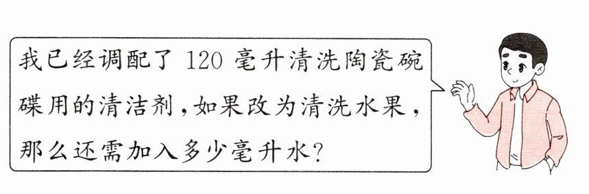 我已经调配了120毫升清洗陶瓷碗碟用的清洁剂,如果改为清洗水果,那么还需加入多少毫升水?
