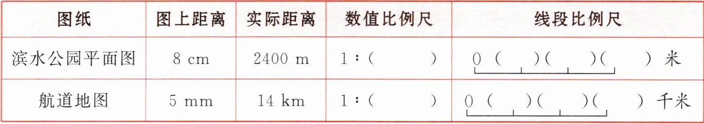 2 请你根据比例尺的计算方法,填写下面的表格。