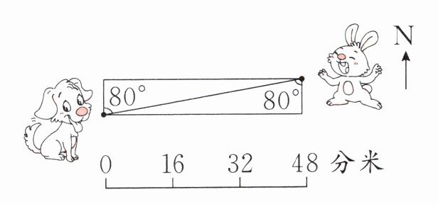 3 下面是狗和兔的位置示意图,请你自行确定以狗或兔为观测点,描述另一只动物的位置。