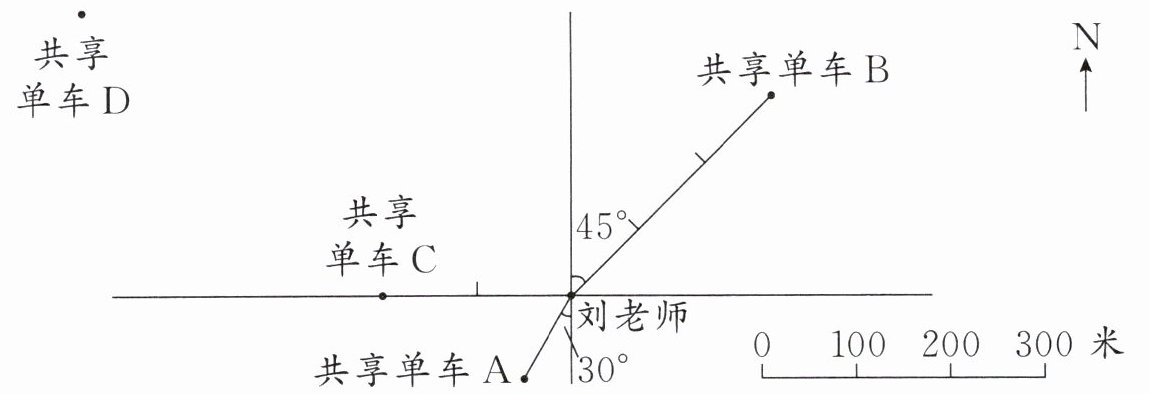 )米处。(4)请你以刘老师为观测点,描述共享单车 D 的位置: