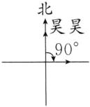 (1)题,如图①,昊昊面向北站立,他向右转 90°后,面向的方向是正东。