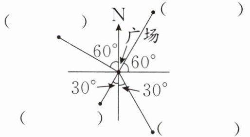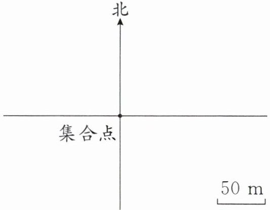 (1)四年级露营地在集合点的北偏西$60^{\circ }$方向 100 米处。