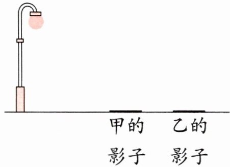 2 如右图,甲、乙两人站在路灯下,他们离路灯的距离不同,但影子几乎一样长。结合图中信息想一想,他们的身高相比较,(