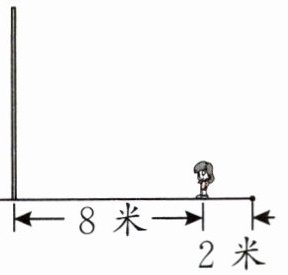 4 在白天的某一时刻,身高 1.6 米的小华站在离电线杆 8 米的地方,此时测得小华的影长为 2 米,且小华影子的顶端与电线杆影子的顶端重合,如下图。电线杆的高度为多少米?
