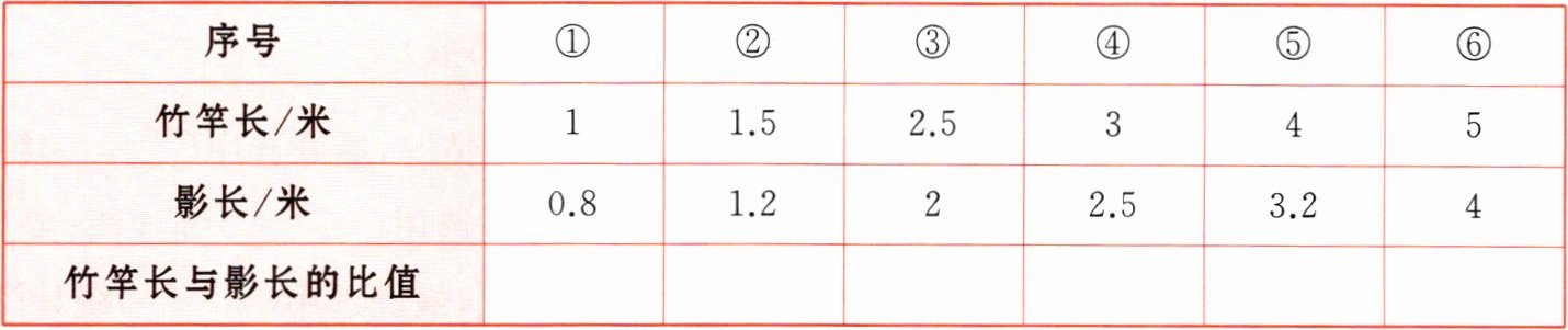 (1)算出竹竿长与影长的比值,并填在上表中。