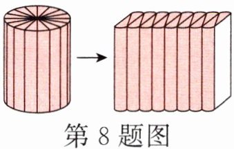 8. 把一个底面直径是8厘米的圆柱平均切开,再拼成一个近似的长方体后(如下图),表面积增加了80平方厘米。这个圆柱的高是(