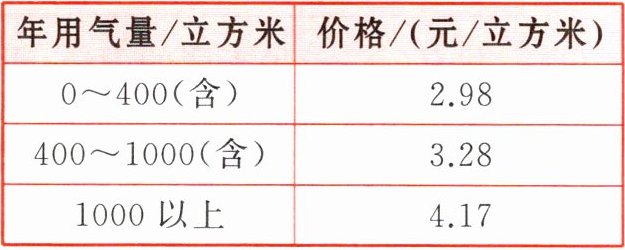 (3)某市居民用管道天然气实行阶梯收费,标准如右表。笑笑家去年共用天然气1200立方米,共需付费(