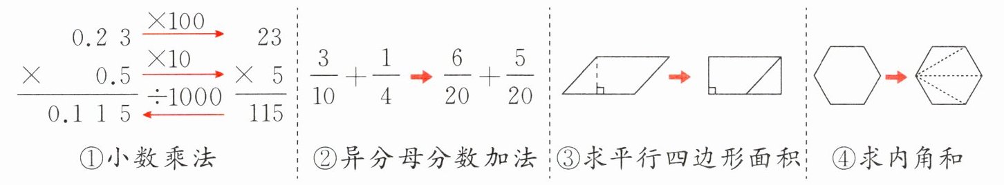 (2)转化思想是重要的数学思想之一,下面运用了转化思想的共有(