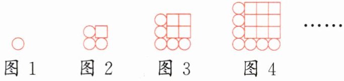 11. 观察下图,如果按规律画下去,那么图 10 中$$◯$$的个数是$$□$$的$$\frac{(\ \ \ \ \ )}{(\ \ \ \ \ )}$$;图$$n$$中$$◯$$有( )个,$$□$$有( )个;当某幅图中$$◯$$有 25 个时,$$□$$有( )个。