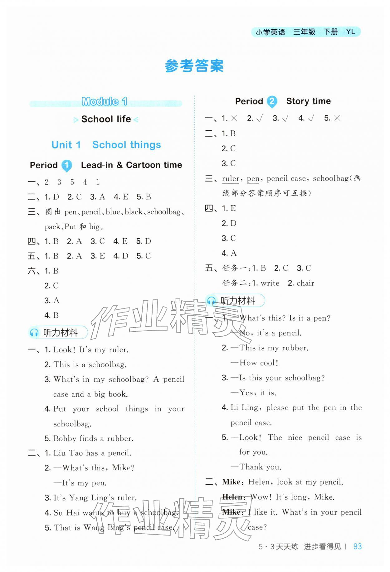 注:目前有些书本章节名称可能整理的还不是很完善,但都是按照顺序排列的,请同学们按照顺序仔细查找。练习册 2026年53天天练三年级英语下册译林版 答案主要是用来给同学们做完题方便对答案用的,请勿直接抄袭。