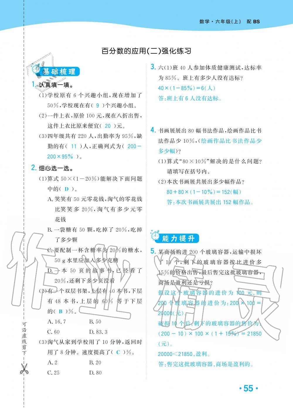 注:目前有些书本章节名称可能整理的还不是很完善,但都是按照顺序排列的,请同学们按照顺序仔细查找。练习册 2019年小学生1课3练培优作业本六年级数学上册北师大版 答案主要是用来给同学们做完题方便对答案用的,请勿直接抄袭。