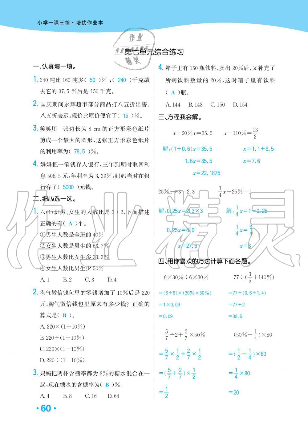 注:目前有些书本章节名称可能整理的还不是很完善,但都是按照顺序排列的,请同学们按照顺序仔细查找。练习册 2019年小学生1课3练培优作业本六年级数学上册北师大版 答案主要是用来给同学们做完题方便对答案用的,请勿直接抄袭。
