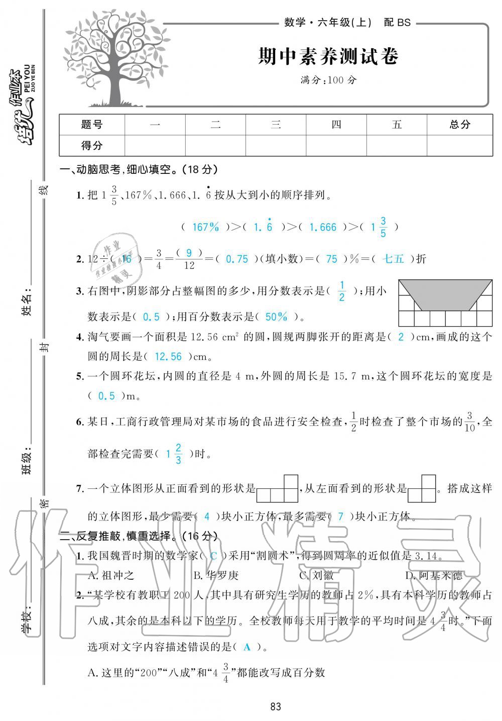 注:目前有些书本章节名称可能整理的还不是很完善,但都是按照顺序排列的,请同学们按照顺序仔细查找。练习册 2019年小学生1课3练培优作业本六年级数学上册北师大版 答案主要是用来给同学们做完题方便对答案用的,请勿直接抄袭。