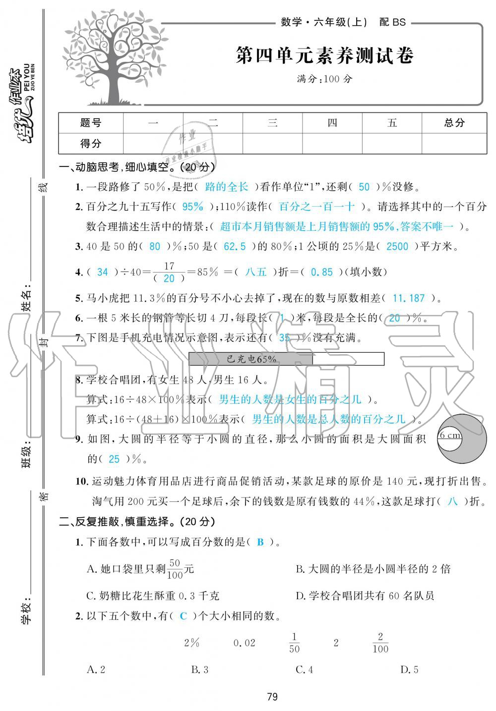 注:目前有些书本章节名称可能整理的还不是很完善,但都是按照顺序排列的,请同学们按照顺序仔细查找。练习册 2019年小学生1课3练培优作业本六年级数学上册北师大版 答案主要是用来给同学们做完题方便对答案用的,请勿直接抄袭。