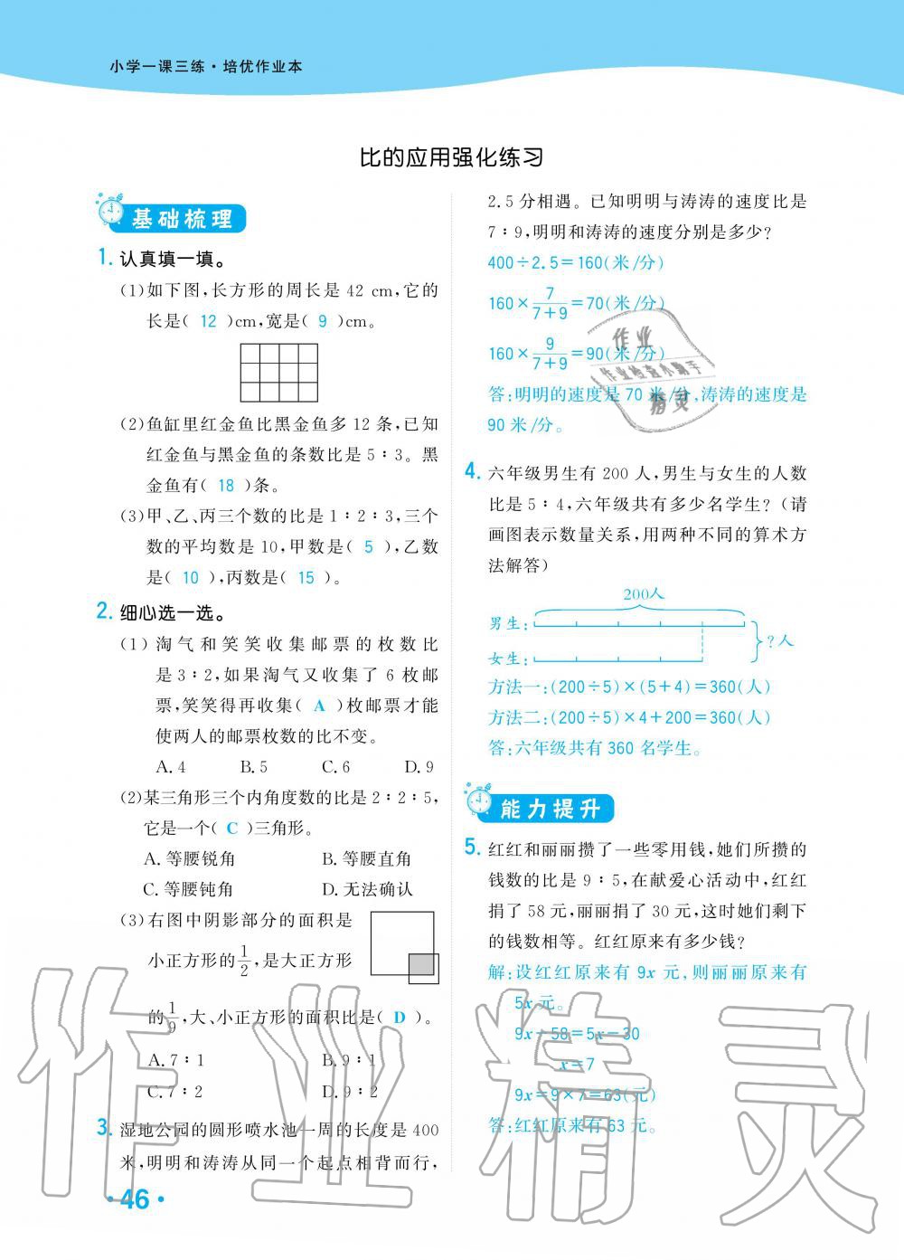 注:目前有些书本章节名称可能整理的还不是很完善,但都是按照顺序排列的,请同学们按照顺序仔细查找。练习册 2019年小学生1课3练培优作业本六年级数学上册北师大版 答案主要是用来给同学们做完题方便对答案用的,请勿直接抄袭。