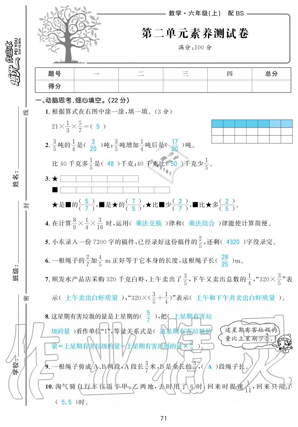 注:目前有些书本章节名称可能整理的还不是很完善,但都是按照顺序排列的,请同学们按照顺序仔细查找。练习册 2019年小学生1课3练培优作业本六年级数学上册北师大版 答案主要是用来给同学们做完题方便对答案用的,请勿直接抄袭。