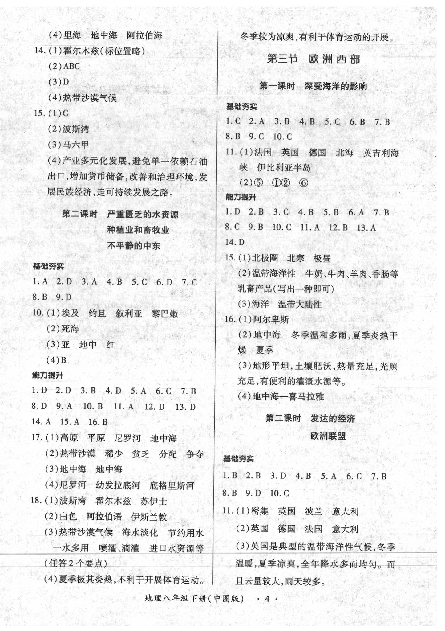 注:目前有些书本章节名称可能整理的还不是很完善,但都是按照顺序排列的,请同学们按照顺序仔细查找。练习册 2020年一课一练创新练习八年级地理下册中图版 答案主要是用来给同学们做完题方便对答案用的,请勿直接抄袭。