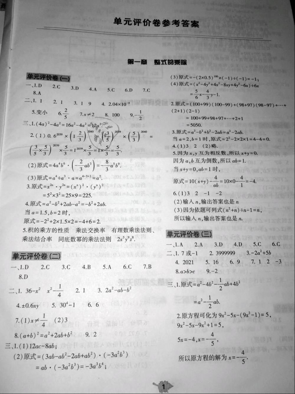 注:目前有些书本章节名称可能整理的还不是很完善,但都是按照顺序排列的,请同学们按照顺序仔细查找。练习册 2020年基础训练七年级数学下册北师大版大象出版社 答案主要是用来给同学们做完题方便对答案用的,请勿直接抄袭。