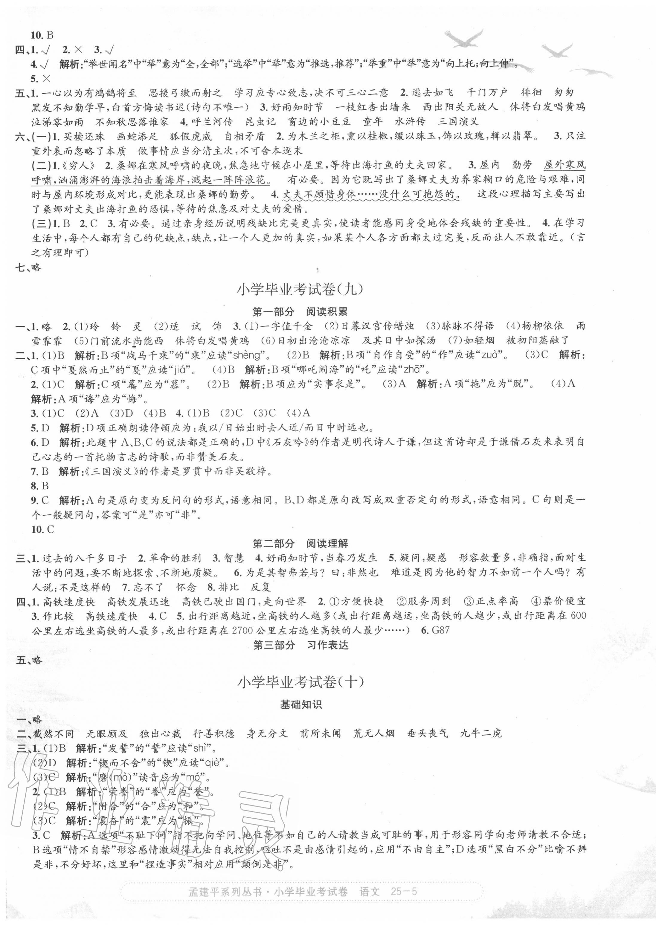 注:目前有些书本章节名称可能整理的还不是很完善,但都是按照顺序排列的,请同学们按照顺序仔细查找。练习册 2020年孟建平小学语文毕业考试卷 答案主要是用来给同学们做完题方便对答案用的,请勿直接抄袭。