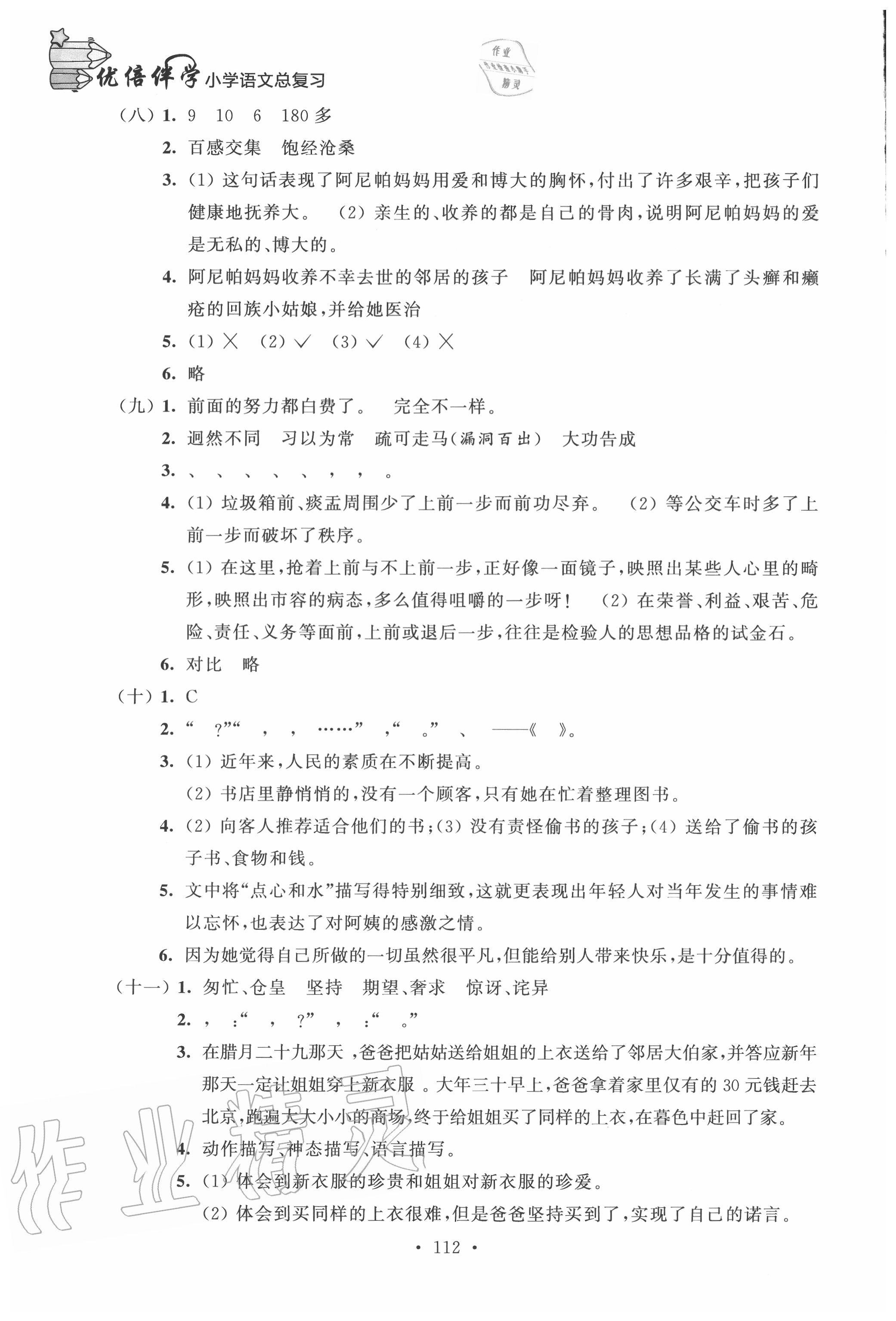 注:目前有些书本章节名称可能整理的还不是很完善,但都是按照顺序排列的,请同学们按照顺序仔细查找。练习册 2020年优倍伴学小学语文总复习 答案主要是用来给同学们做完题方便对答案用的,请勿直接抄袭。