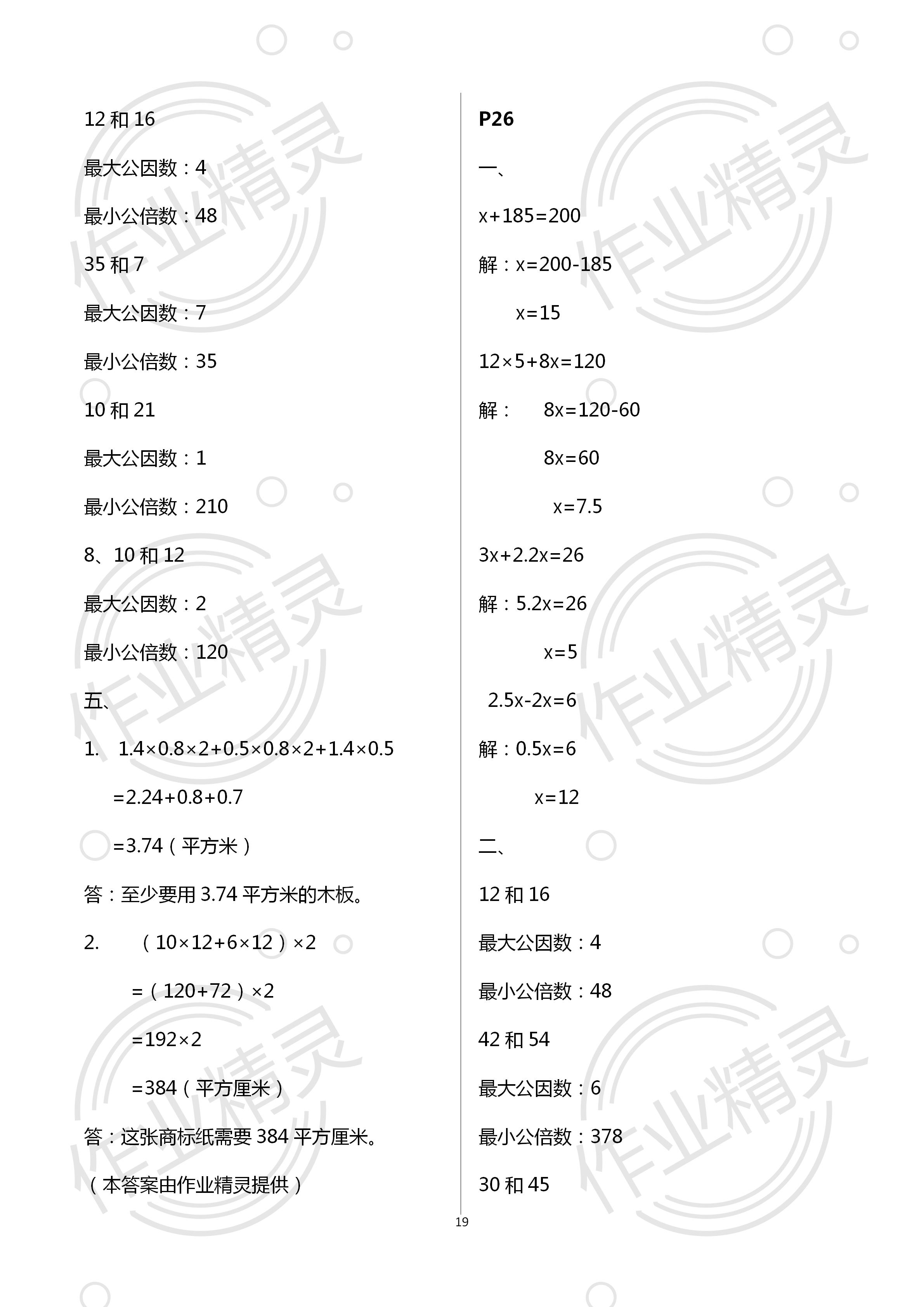 注:目前有些书本章节名称可能整理的还不是很完善,但都是按照顺序排列的,请同学们按照顺序仔细查找。练习册 2020年暑假作业及活动新疆文化出版社五年级数学暑假作业人教版 答案主要是用来给同学们做完题方便对答案用的,请勿直接抄袭。