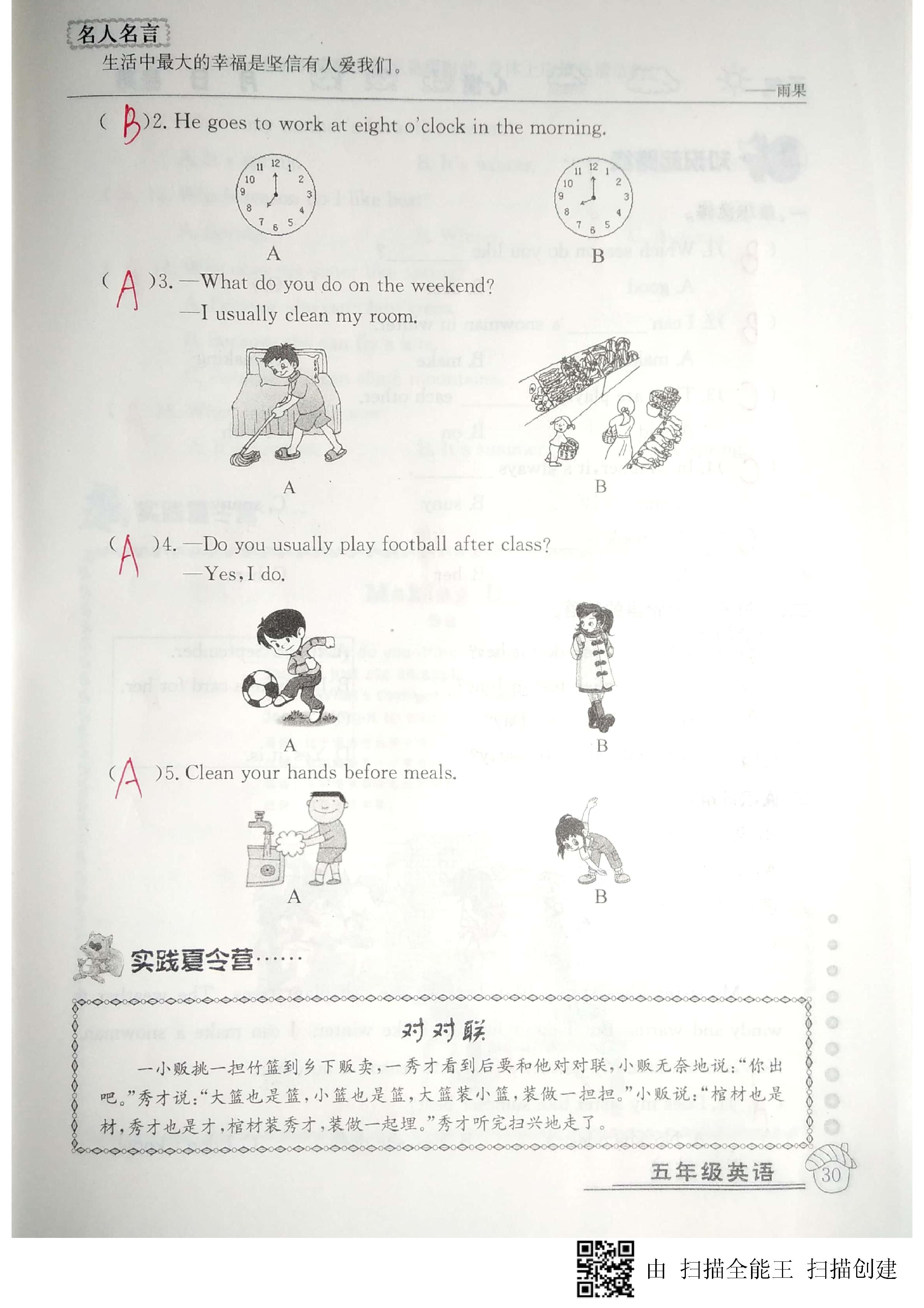 注:目前有些书本章节名称可能整理的还不是很完善,但都是按照顺序排列的,请同学们按照顺序仔细查找。练习册 2020年快乐假期暑假作业五年级英语人教版延边教育出版社 答案主要是用来给同学们做完题方便对答案用的,请勿直接抄袭。