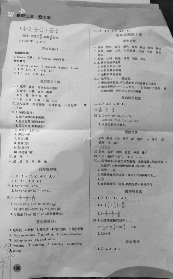 注:目前有些书本章节名称可能整理的还不是很完善,但都是按照顺序排列的,请同学们按照顺序仔细查找。练习册 2020年暑假生活五年级安徽科学技术出版社 答案主要是用来给同学们做完题方便对答案用的,请勿直接抄袭。
