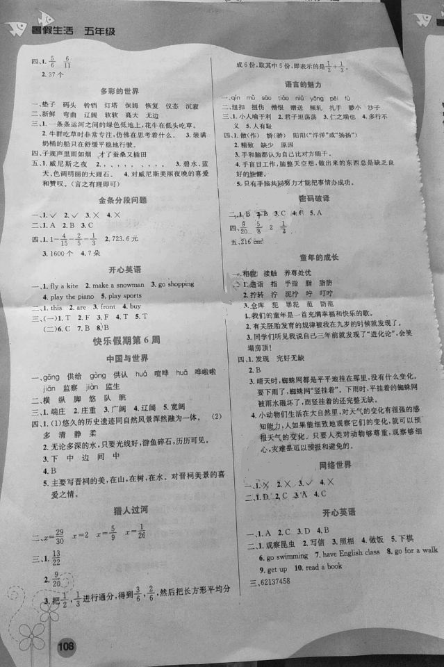 注:目前有些书本章节名称可能整理的还不是很完善,但都是按照顺序排列的,请同学们按照顺序仔细查找。练习册 2020年暑假生活五年级安徽科学技术出版社 答案主要是用来给同学们做完题方便对答案用的,请勿直接抄袭。