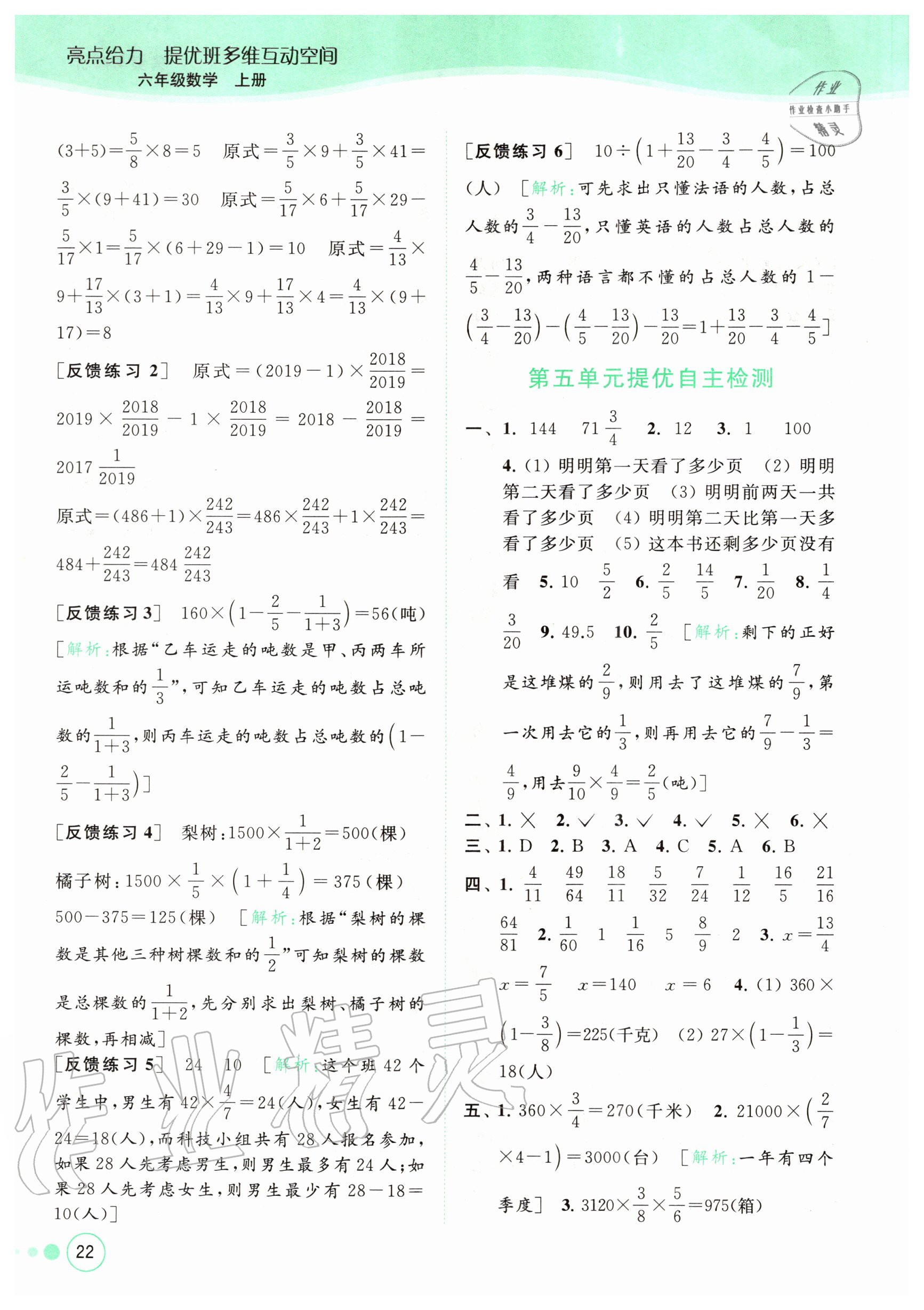 2020年亮点给力提优班多维互动空间六年级数学上册苏教版