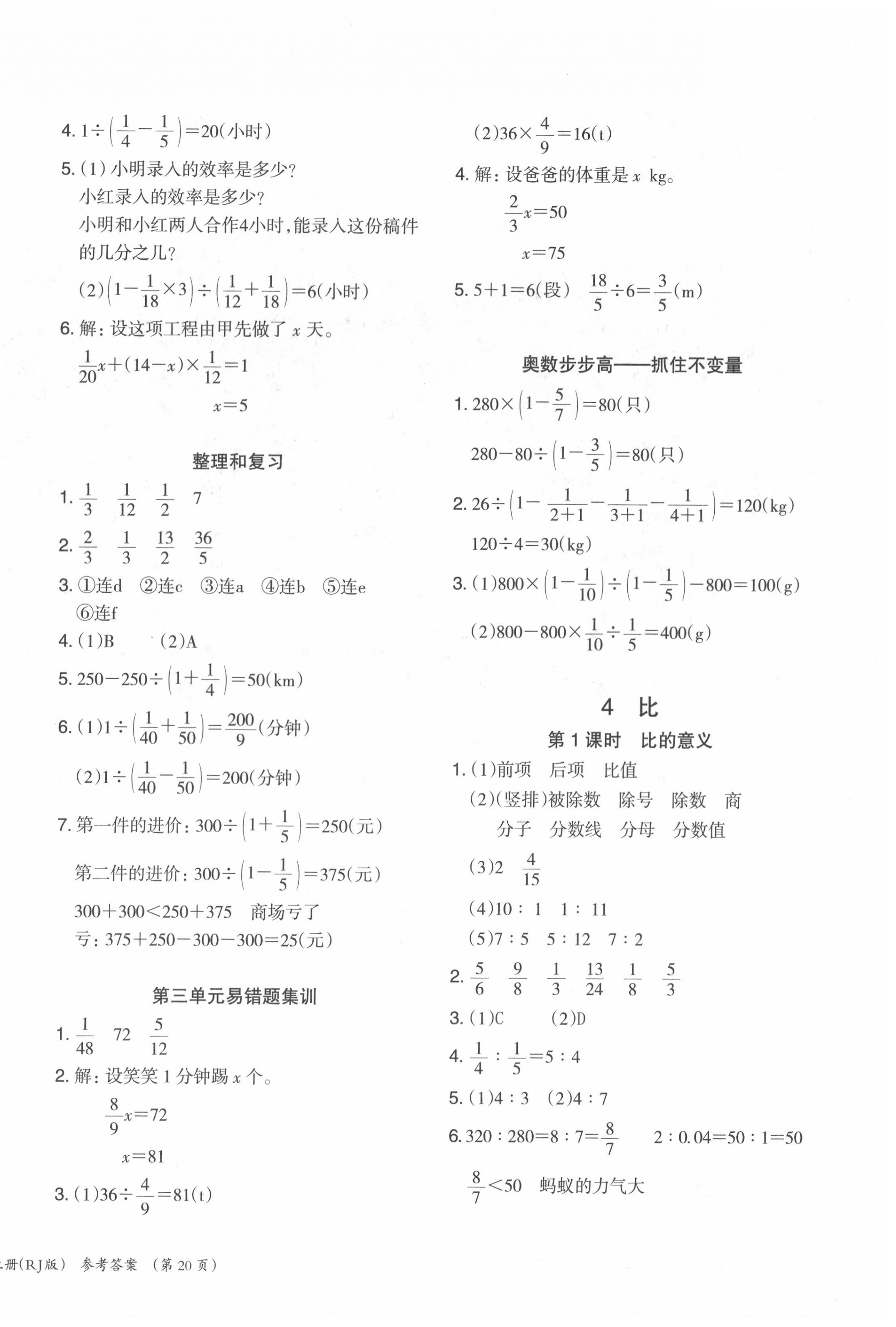 注:目前有些书本章节名称可能整理的还不是很完善,但都是按照顺序排列的,请同学们按照顺序仔细查找。练习册 2020年木头马分层课课练六年级数学上册人教版福建专版 答案主要是用来给同学们做完题方便对答案用的,请勿直接抄袭。