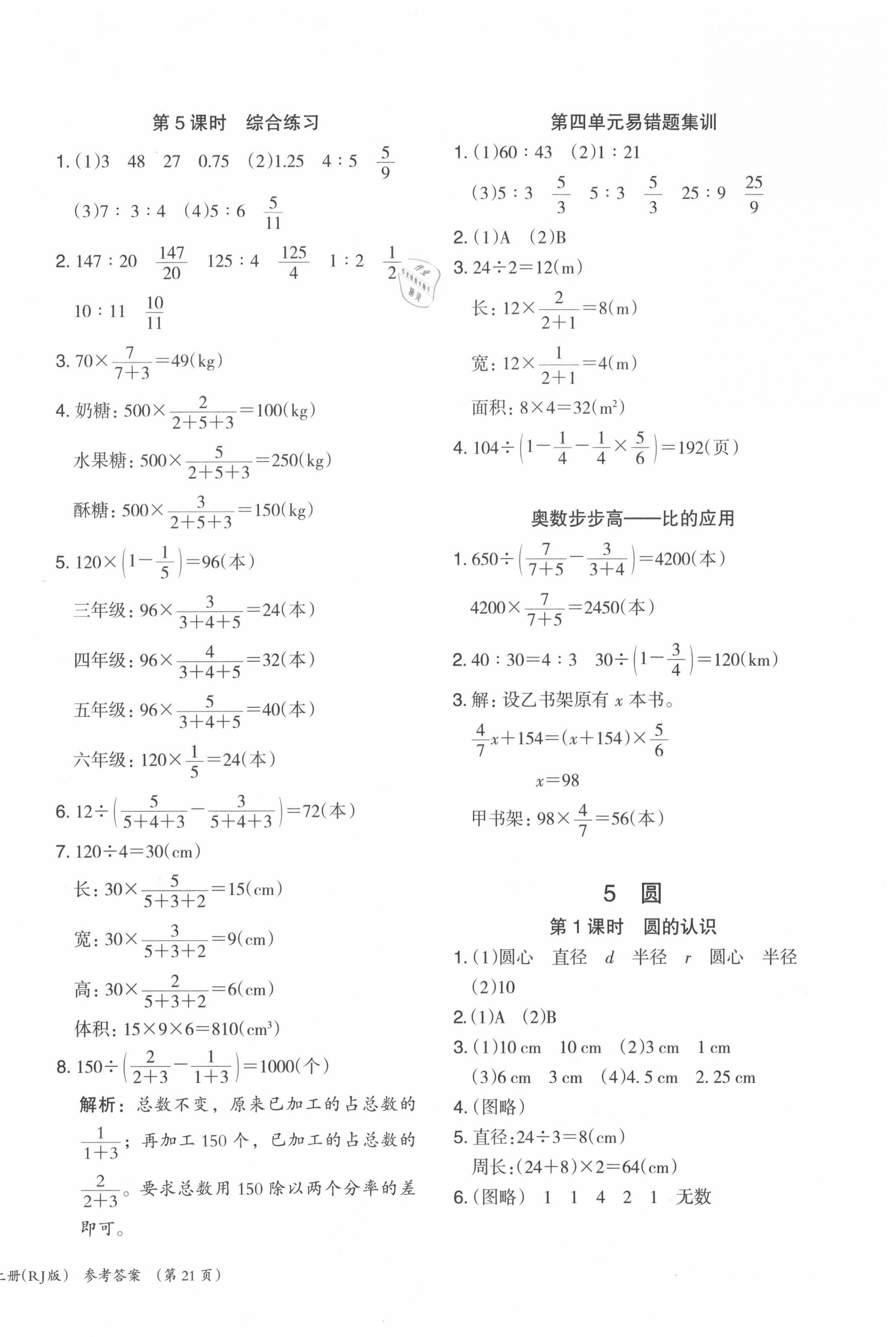 注:目前有些书本章节名称可能整理的还不是很完善,但都是按照顺序排列的,请同学们按照顺序仔细查找。练习册 2020年木头马分层课课练六年级数学上册人教版福建专版 答案主要是用来给同学们做完题方便对答案用的,请勿直接抄袭。