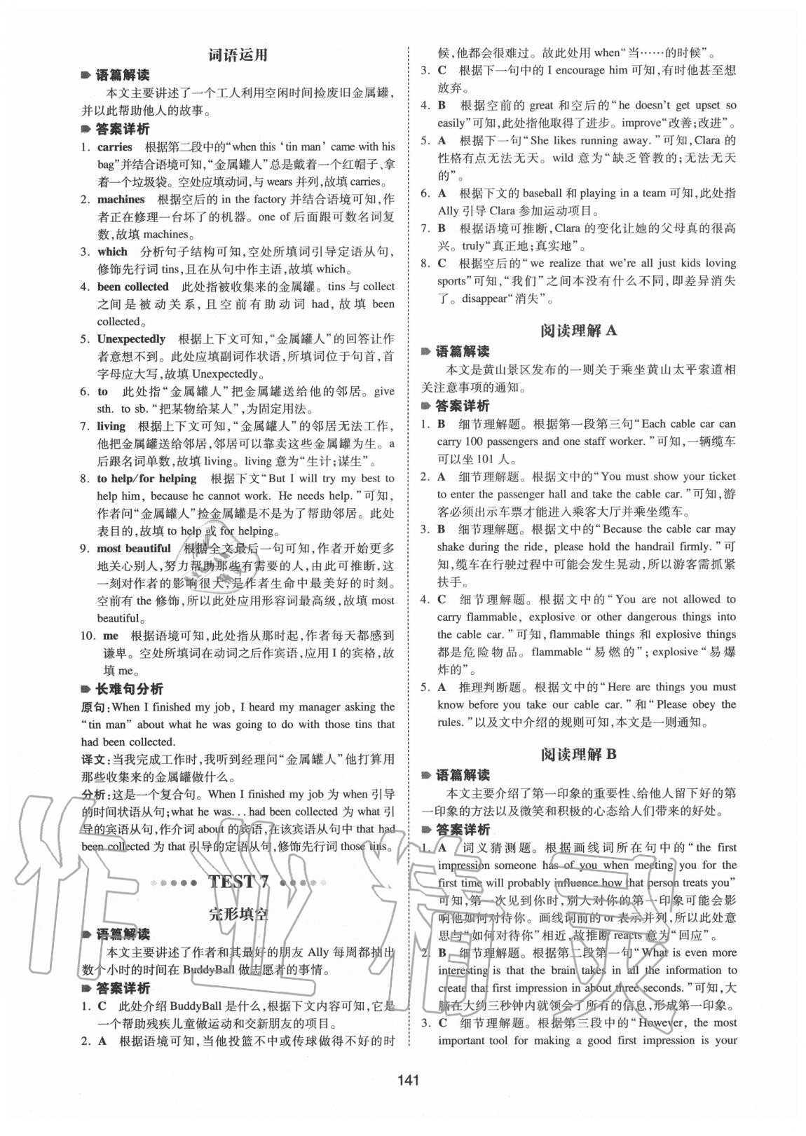注:目前有些书本章节名称可能整理的还不是很完善,但都是按照顺序排列的,请同学们按照顺序仔细查找。练习册 2020年一本英语完形填空与阅读理解中考山西专用 答案主要是用来给同学们做完题方便对答案用的,请勿直接抄袭。