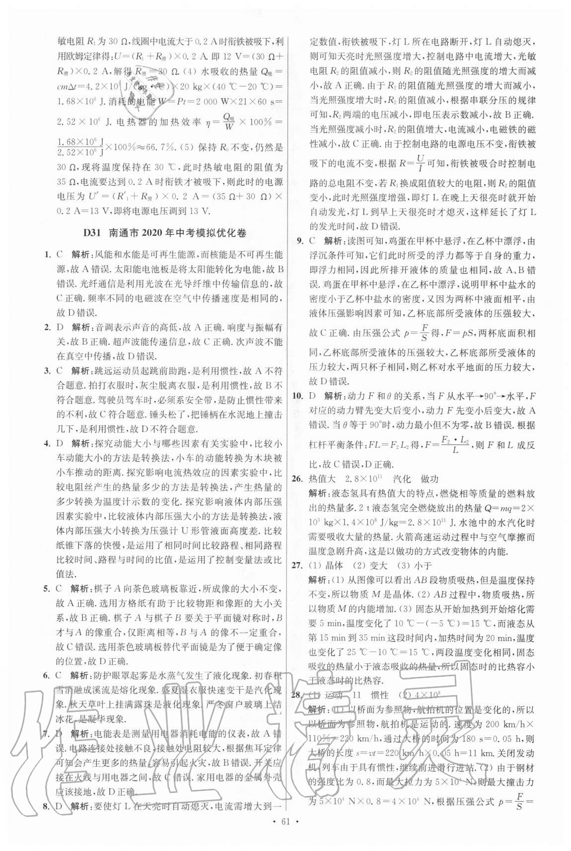 2021年江苏13大市中考试卷与标准模拟优化38套物理