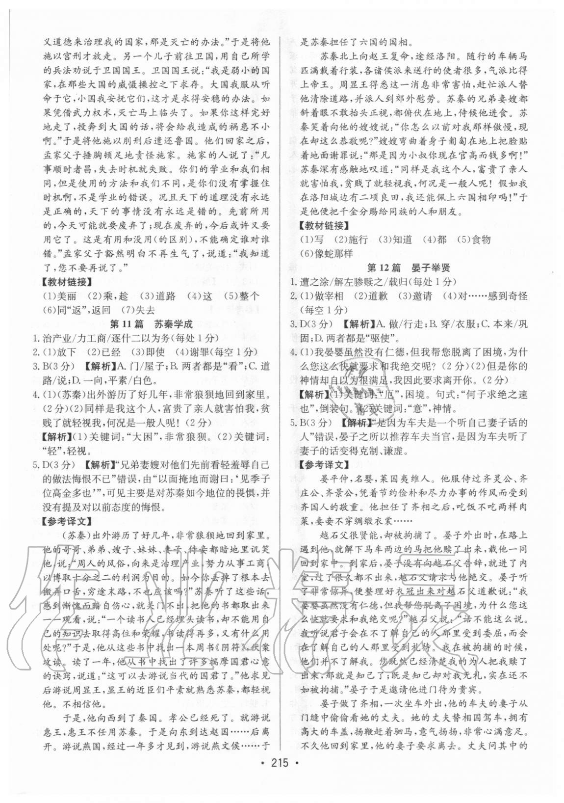 2021年启东中学作业本九年级加中考古诗文阅读徐州专版