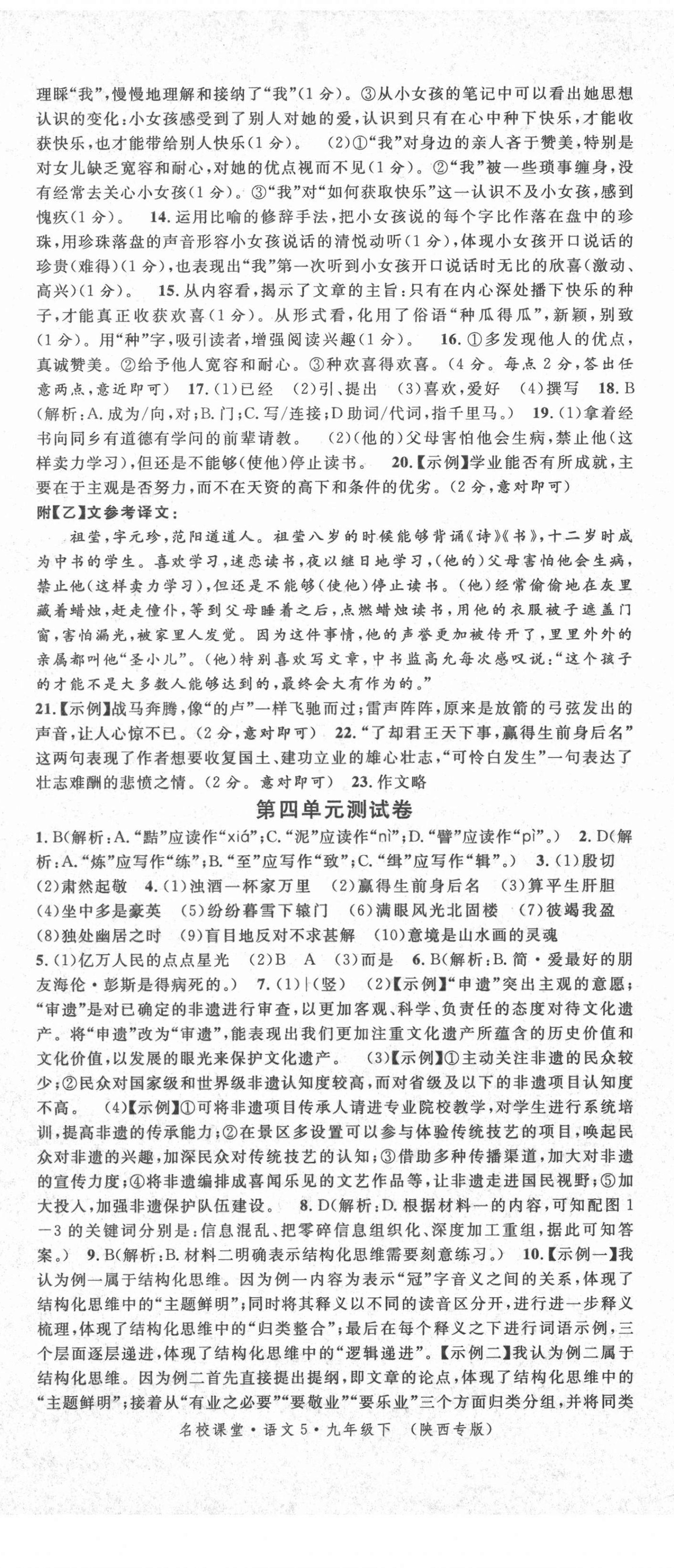 注:目前有些书本章节名称可能整理的还不是很完善,但都是按照顺序排列的,请同学们按照顺序仔细查找。练习册 2021年名校课堂九年级语文下册人教版5陕西专版 答案主要是用来给同学们做完题方便对答案用的,请勿直接抄袭。