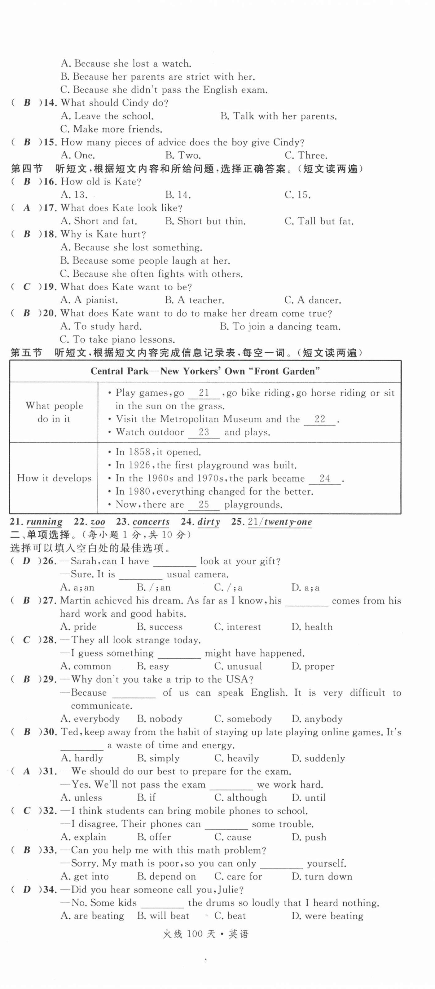 2021年火线100天中考滚动复习法英语